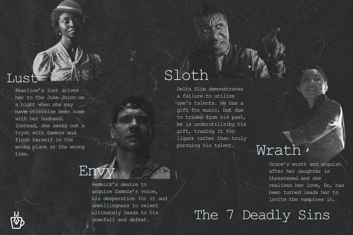 Aside from illuminating the religious spectrum that often goes unacknowledged in Black communities, Sinners also uses the seven deadly sins to illustrate the arc of each character. Pride, said to be the root of all other sins, is the starting point for the story — the sin that both Smoke and Stack are guilty of.